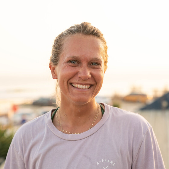 Sabrina ist Surflehrerin seit 2022. Im Sommer unterrichtet sie an den wunderschönen Stränden von Pembrokeshire in Wales, die Winter verbringt sie als Teil des A-Frame Surfteams in El Palmar. Zum ersten Mal auf einem Surfbrett stand sie 2011 in Lanzarote und reist seitdem zu den schönsten Wellen auf der gesamten Welt. Bevor sie das Surf zu Ihrem Job gemacht hat, arbeitete sie als Wissenschaftlerin in der pädagogischen Psychologie an der Uni. Dort entwickelte sie Förderprogramme für Familien und unterrichtete zukünftige Lehrer*innen. Sie ist Expertin für Motivations-Coaching und Lernen. Als Surflehrerin kann sie ihre beiden Passionen, das Surfen und Unterrichten verbinden.